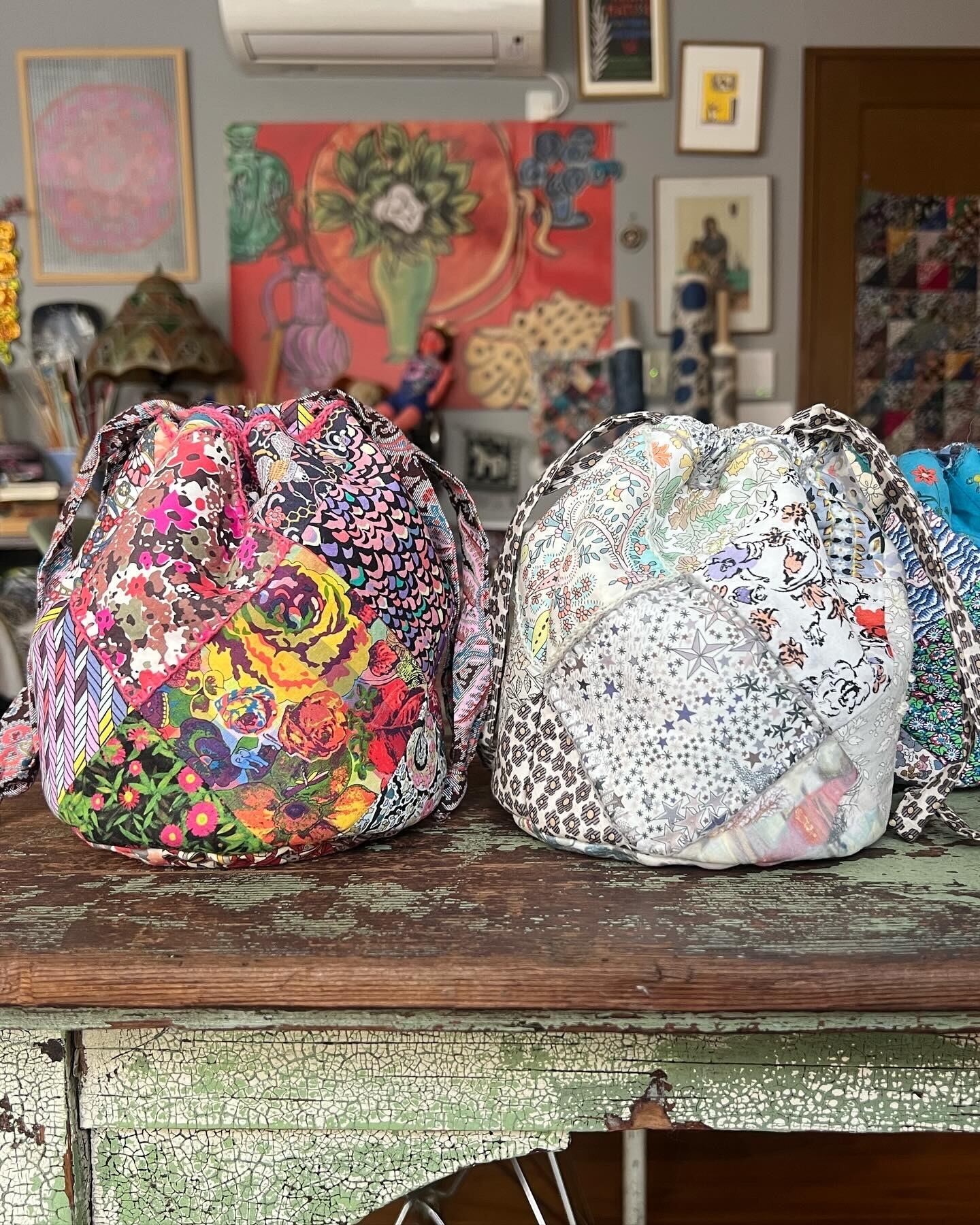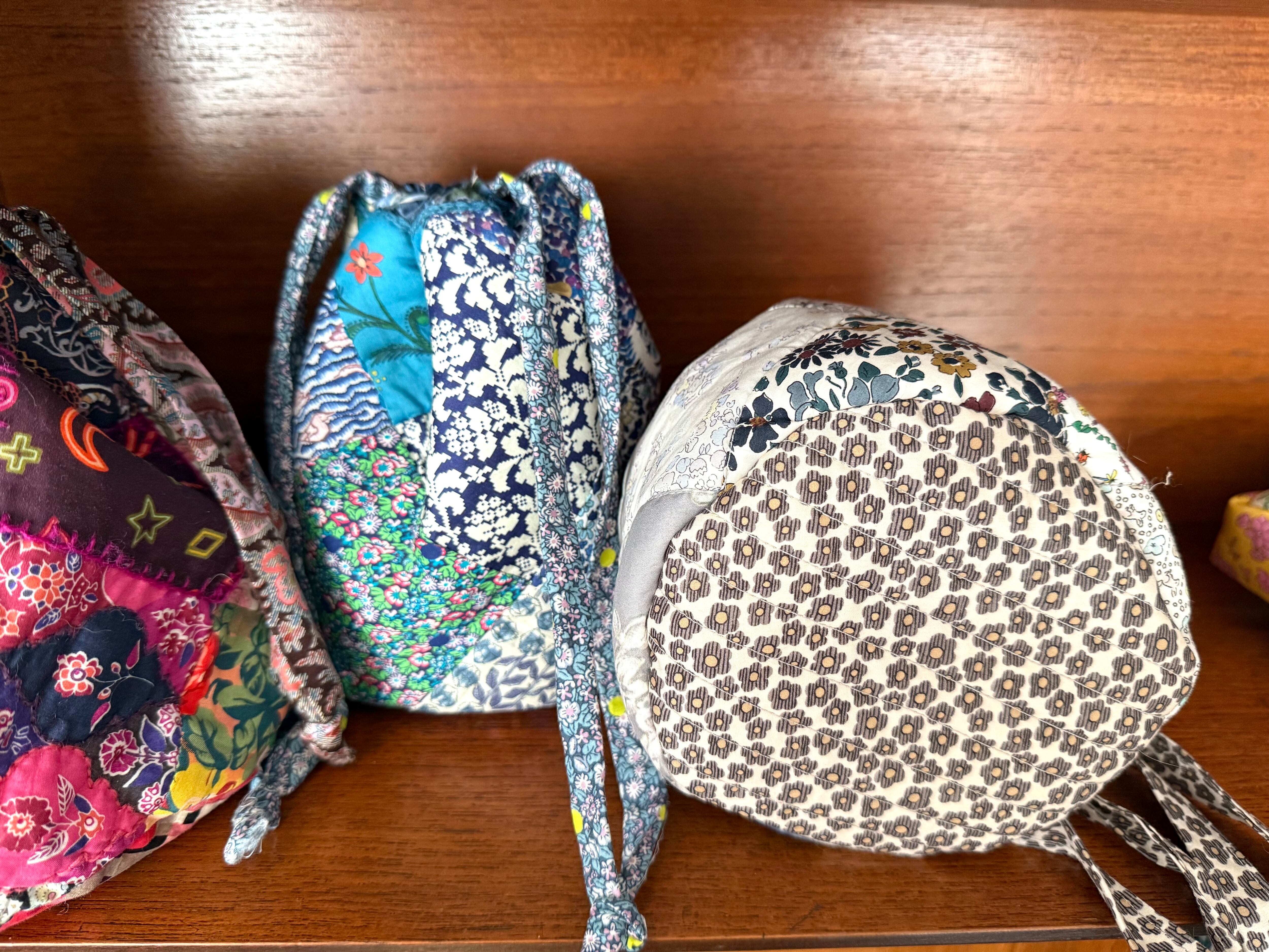 リバティと同じ イギリス製のウールの刺繍糸で 一つ一つパッチワークに合わせて素朴なステッチを刺繍して仕上げます